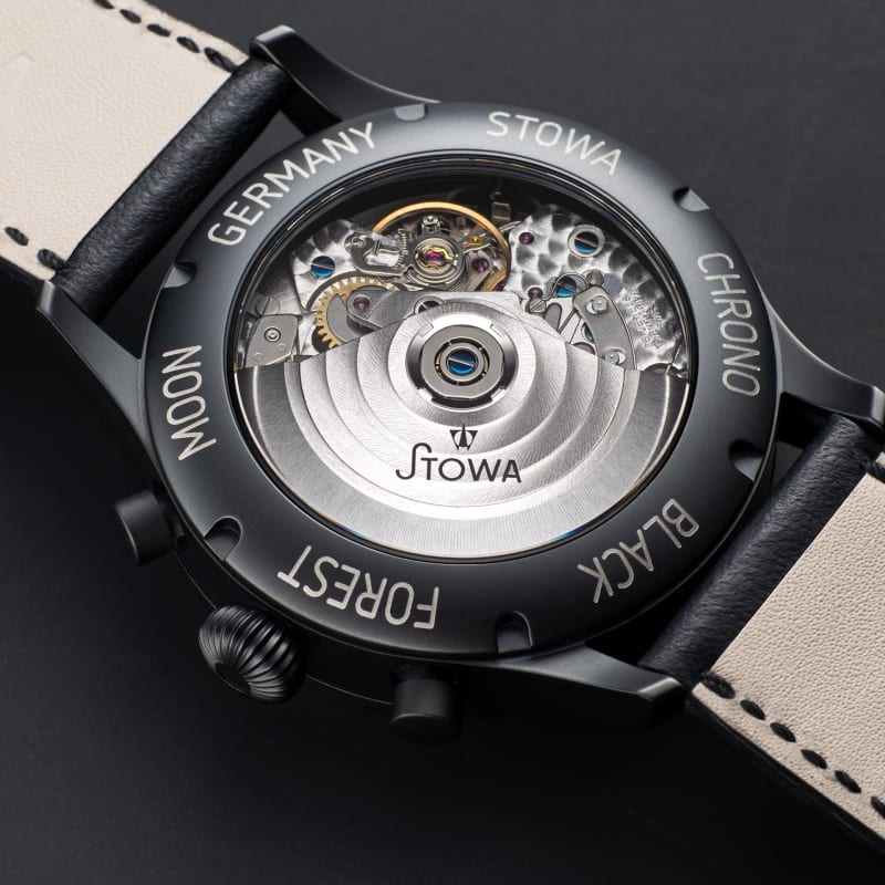 Inside, you’ve got the Swiss automatic ETA Valjoux 7751. It’s a workhorse with 25 jewels, ticking at 28,800 vph, and offering a 48-hour power reserve. Functions include hours, minutes, sub-seconds, day/date/month indication, chronograph, and moonphase. Top Elaboree finishing keeps it respectable.
